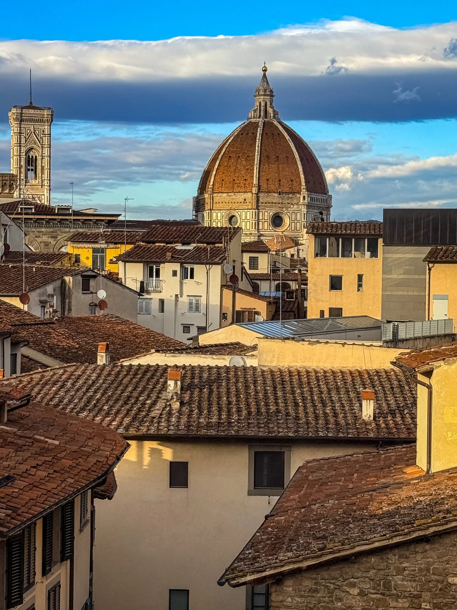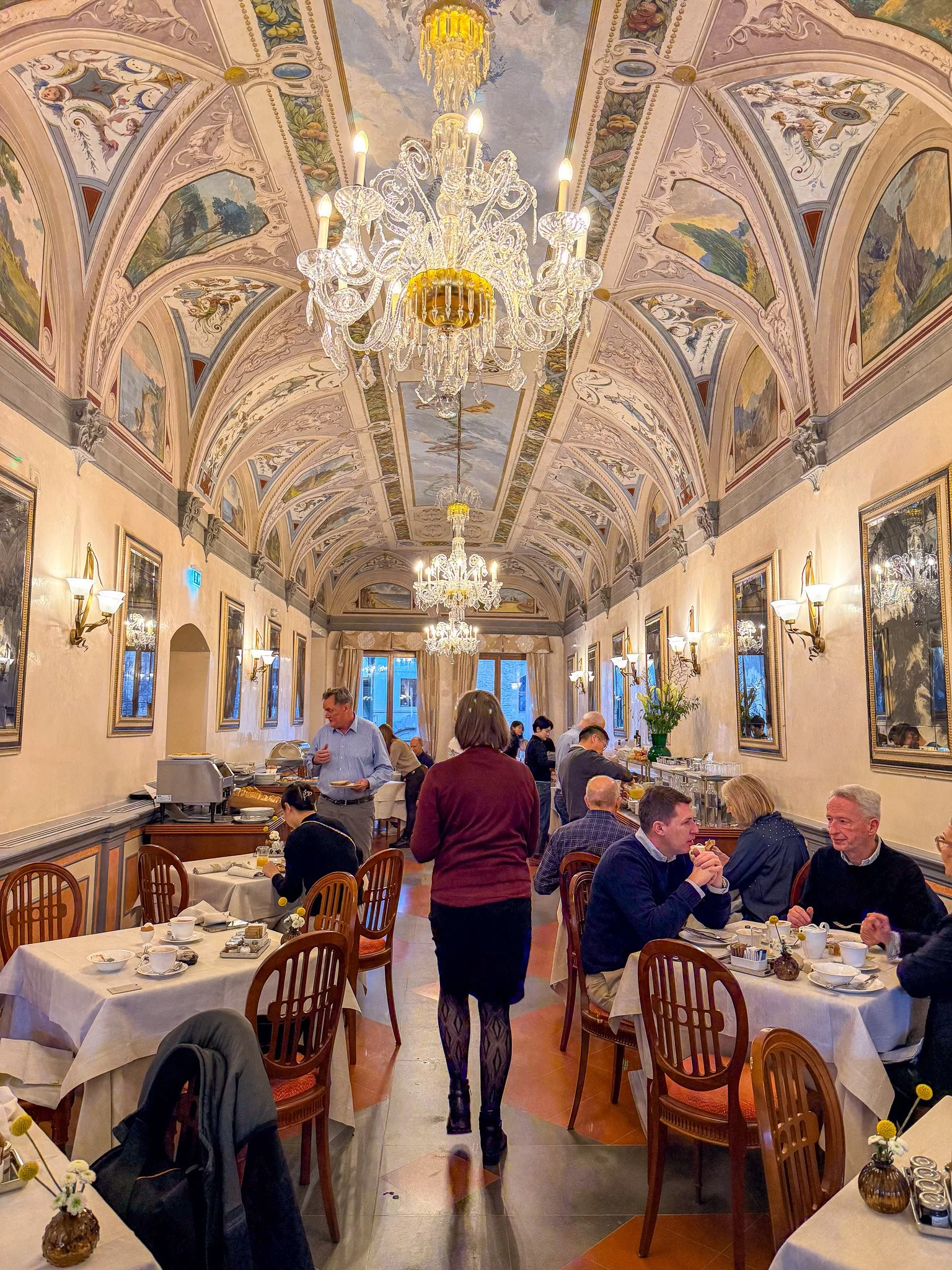 After a restful night in the hotel, I went to the hotel’s breakfast room. I mean, just look at this place. I know I posted this photo last week, but I wanted to elaborate on its history a bit further. So, the story goes that the architect who designed the famous double shell dome of the Cathedral of Santa Maria del Fiore, known colloquially to us all as the Duomo, was Filippo Brunelleschi. The hotel was formerly his house when he lived in Florence in the early 1400s. I’m not sure if this is where he also ate his breakfast, and I’m pretty sure he never had a cappuccino and a cornetto in here, but I know he walked these rooms. Because I am forever curious, I just looked up what he did probably eat for breakfast, and to my satisfaction I have discovered that it was probably bread, soaked in wine. Breakfast of champions or of Italian architects, apparently.