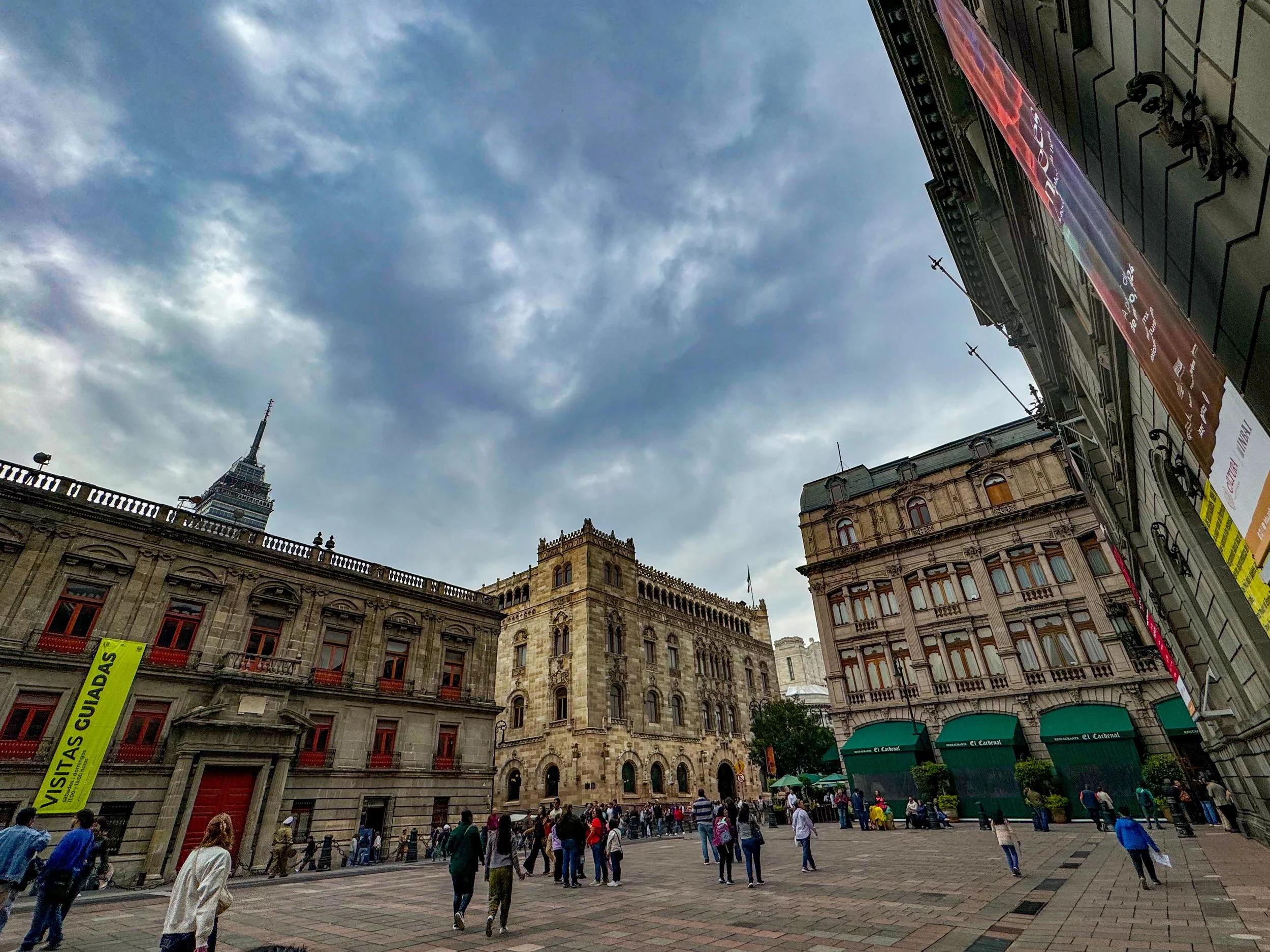 Now we are in the Centro. And there is a massive protest. We don’t know what they are protesting, but there are lots of children and other young people, mixed in with adults. They all have signs we can’t read. Some people are dressed in costumes, some wear giant paper mache figures that stand above the crowds. Some are on stilts. There are colorful flags and music coming from every direction and endless voices screaming into microphones and bullhorns. The police have blocked the streets in every direction with pedestrian barricades trapping the protestors in place. The traffic can’t move, so drivers lean into their car horns with frustration. The nose combines, the din is endless. We are on foot after abandoning our Uber driver, weaving our way through the faces. Street vendors who see a golden opportunity are set up on every corner cooking tacos, churros, and blue corn quesadillas. I catch passing glimpses of bubbling meats braising together, piles of onions and peppers, fresh tortillas on the comals. The smell is overwhelmingly good. We want to stop, but there are just too many people. So, we keep moving towards our goal, which today happens to be the Museo Nacional De Artes. And it’s still a long way away.