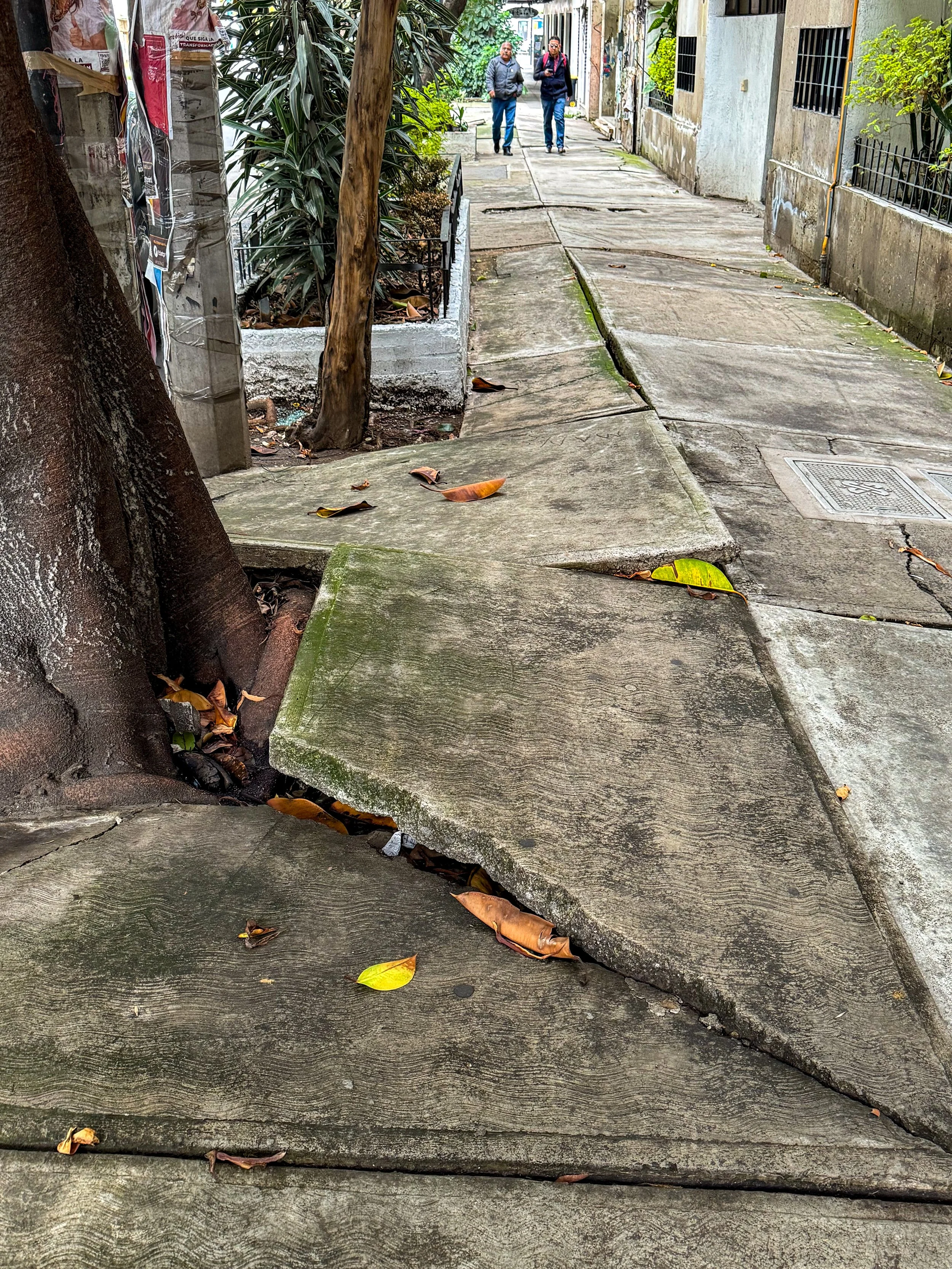 Instead, what we have seen here in the Condesa neighborhood, is a lush green neighborhood where streets are canopied by enormous rubber and other tropical trees. All of the house plants that you have purchased for yourself—fiddle figs, palmettos, philodendrons, ferns—well, they are just outdoor plants here, and surround you everywhere you go. There are beautiful parks and then the park-like walking paths in the center of the busiest streets.