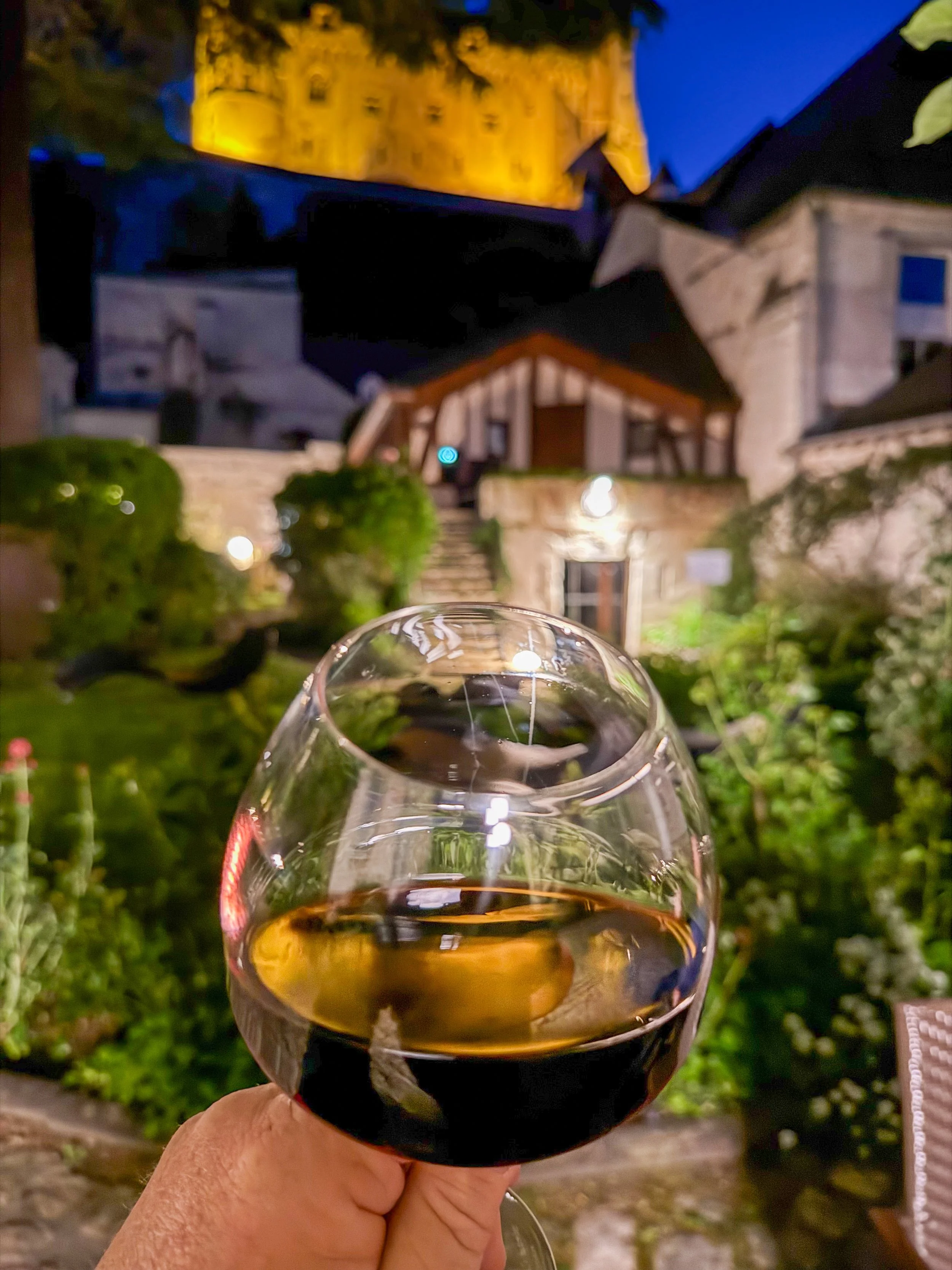 Wine each evening in the hotel courtyard while in the Loire Valley