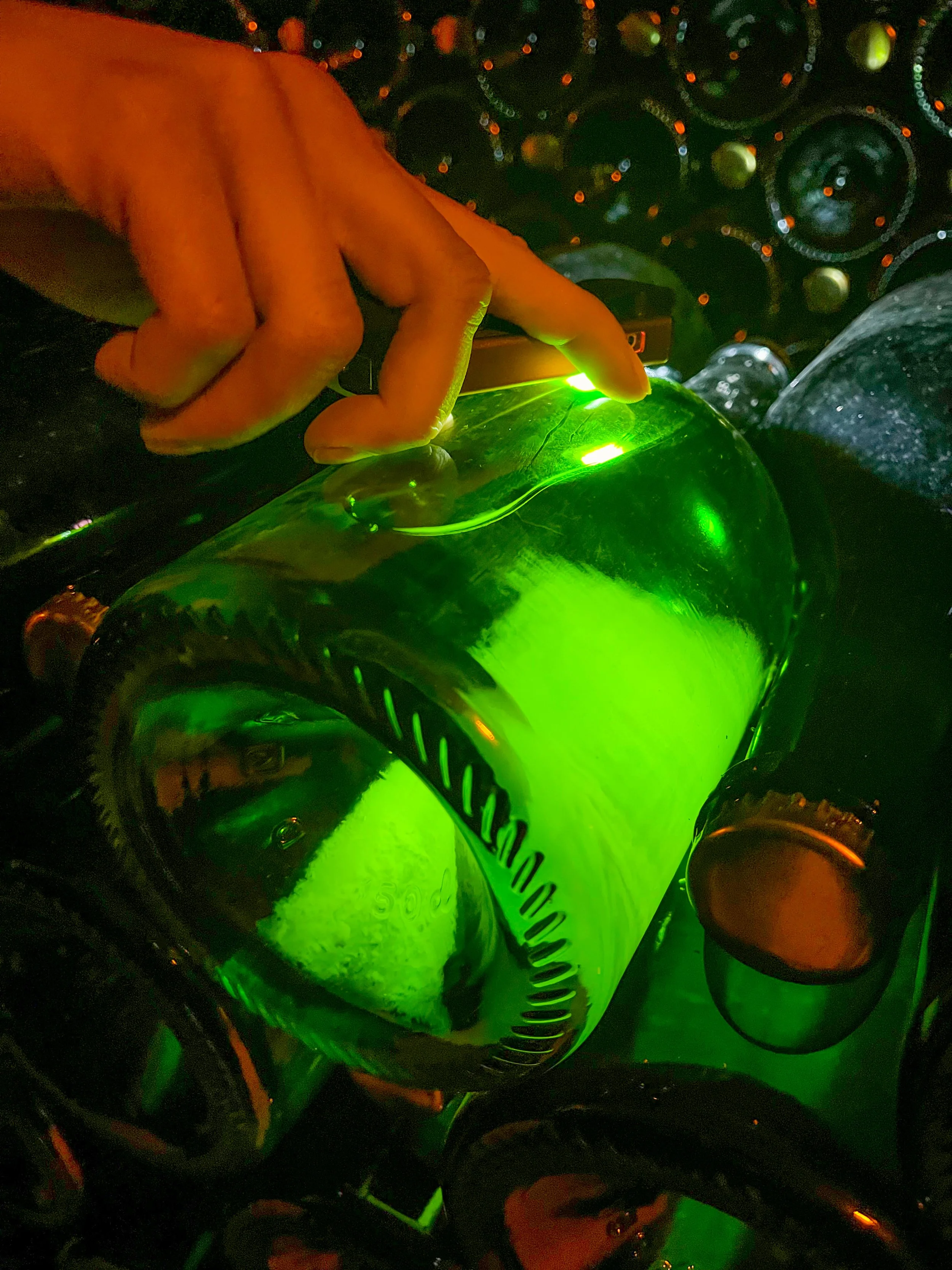 Aging Champagne sur lies, the dead yeast that gives Champagne its bready-yeasty aromas