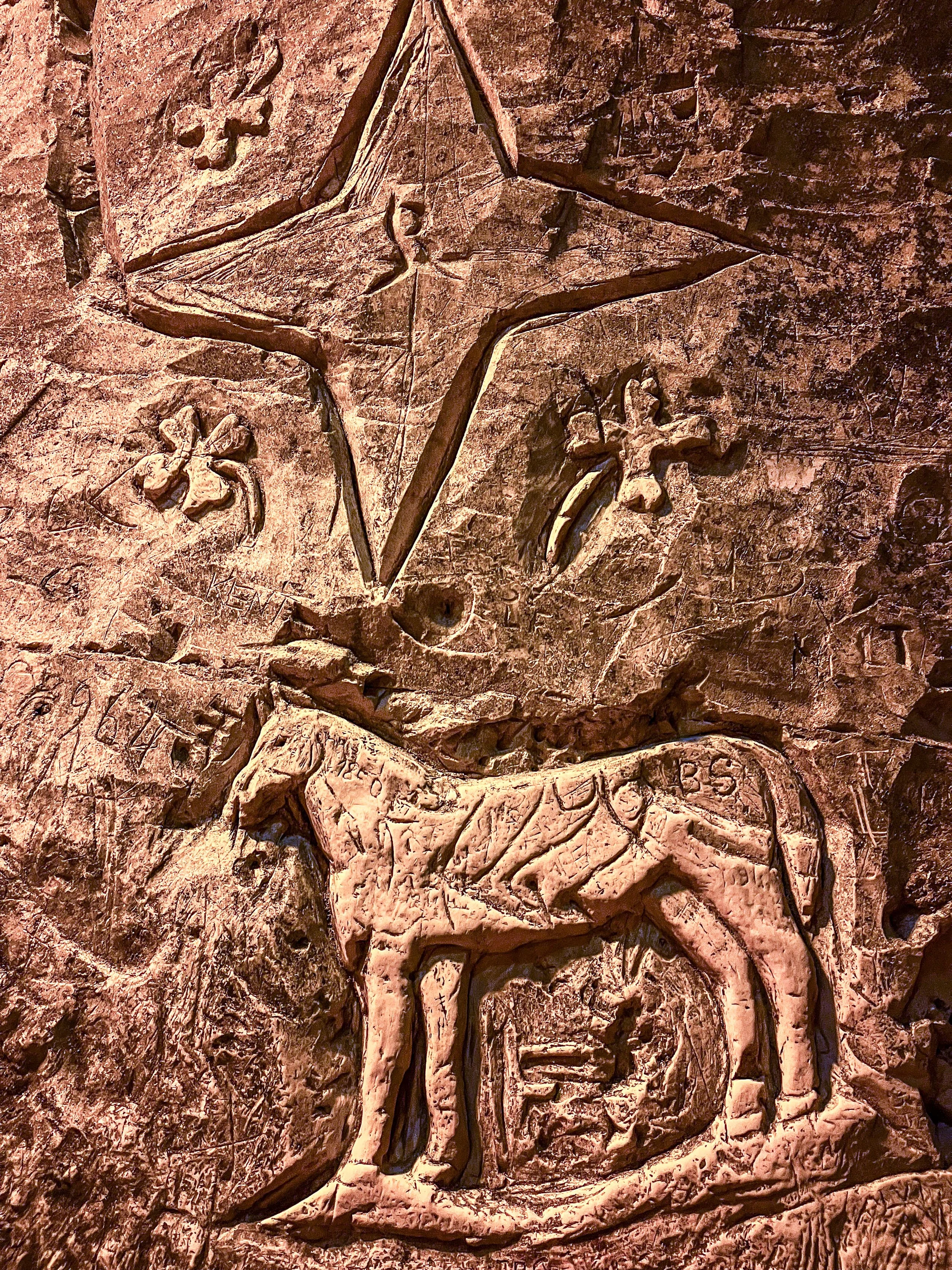 The next day, feeling stronger, we made our way to Taittinger in the morning and had a great guide there who took us through the labyrinth of original chalk caves which run for kilometers under the city. These are the same caves where the people protected themselves during the wars. While hiding under the rubble of the city while the battles raged on, they developed impromptu schools and markets, held weddings, had babies, and otherwise tried to continue with their normal lives as much as they could below ground while the city was being bombed above their heads. Etched into the chalk walls were all kinds of messages in very ornate, perfectly written cursive from the late 1800s. I saw other notes to the future dating to WWI, WW2, and I even saw some from the 1970s.